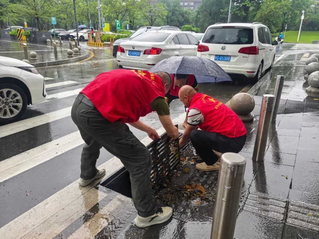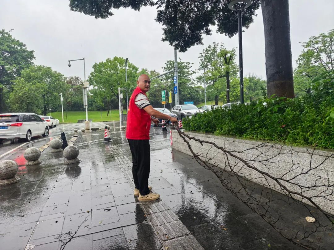 汛情当前,退役军人志愿服务队以 “雨情为号、汛情为令”,紧急部署防汛工作。一方面组织力量对重点路段、低洼区域进行全面巡查,细致排查积水路段井盖移位、漏电等安全隐患,及时设置警示标志;另一方面按照 “先重点内涝后一般路段、先主干后次巷” 原则在主次干道、公交站点等区域推水清淤、清理路面枯树枝,并打开排水井盖、清掏垃圾杂物,确保排水畅通。