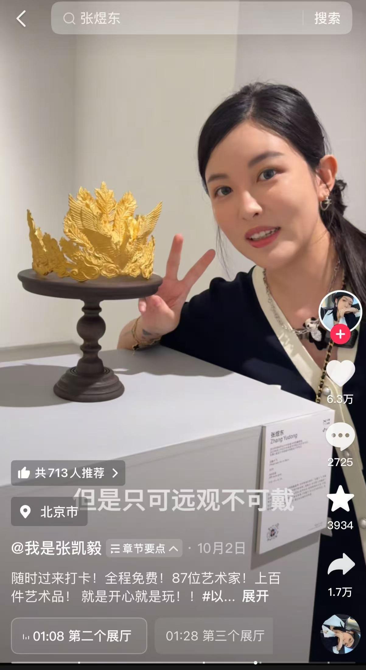 12月14日,潇湘晨报记者私信@我是张凯毅,发现其私信和评论已关闭。记者注意到,今年10月2日,@我是张凯毅发布了一则视频,称其老公要免费请大家看展,办展地点在北京X美术馆内,该展览有87位艺术家共计上百件艺术品展出。在该视频中,其也提到过黄金凤冠。